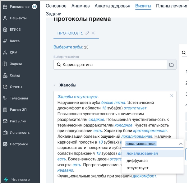 В МИС 32top появились новые шаблоны протоколов лечения. Теперь можно заполнять документы без ручного ввода — только с помощью мышки. Шаблоны соответствуют клиническим рекомендациям и проверены судебно-медицинским экспертом с опытом сопровождения клиник в судебных процессах. Также, появилась возможность печатать дополнительное соглашение к договору, возможность создавать скидочные карты для пациентов. Расширены настройки сегментов для рассылок. Можно выбирать конкретных пациентов или формировать аудиторию по размеру скидки. Это помогает запускать более персонализированные рассылки.