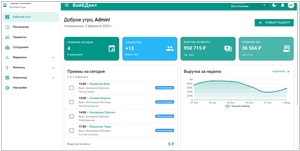 CRM-система для стоматологий. Позволяет вести учет пациентов, составлять документацию, обеспечивать взаимодействие между врачами и сотрудниками компании. Содержит блоки: картотека, графики работы, отчетность и аналитика, расчет заработной платы, выручка, складской учет, задачник, отдел продаж, заявки на покупку товаров, отправка уведомлений. Есть мобильное приложение